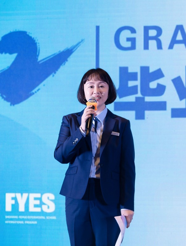 大家晚上好,我是来自飞跃实验国际部的Cherie老师,主要负责的是国际部日常的教学工作。作为教学工作直接的参与者之一,我谨代表所有奋斗在教学一线的老师们,恭喜大家完成了一个阶段的学习,并将奔赴更好的前程。